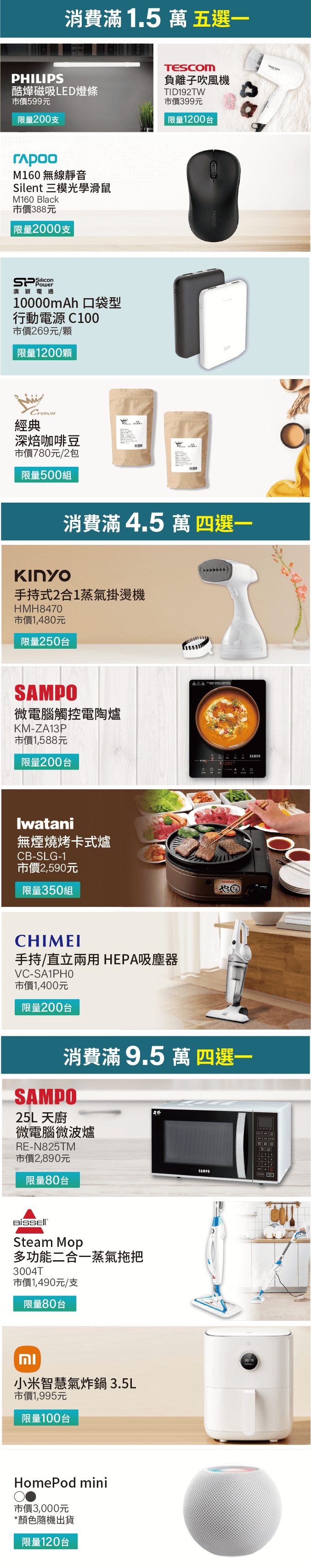 3. 購買提貨券及APPLE/小米全系列商品支消費金額恕不累計。